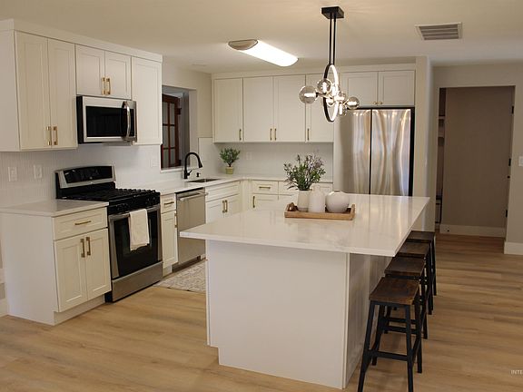 Welcome to your dream home on a spacious 0.41 lot !This stunning property has been fully remodeled from top to bottom, featuring 3 bedrooms, 2 bathrooms, plus an additional office/bedroom with a closet. Enjoy an open and functional layout with 2 living areas with gas fire place, a dining space, and a modern, fully updated kitchen. Every detail has been professionally updated -including new flooring, fresh indoor and outdoor paint, upgraded lighting, premium finishes, and a brand-new roof. Enjoy piece of mind with newer HVAC system and a fully insulated shop with a roll-up door-perfect for hobbies or extra storage. The large backyard offers plenty of space for gardening, entertaining, or simply relaxing. A Chickencoop and 2 large storage sheds included-Bring your chickens and goats! There is also ample parking for RV, boat or a trailer. NO HOA. Don't miss out on this incredible home, come see it!
