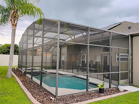 Eligible for 100% Financing with a USDA loan. LOW HOA, NO CDD and the Property Appraised above Listing price, thus instant Equity. Large screened in Pool Home with under roof lanai and fenced in back yard and tranquil pond view from the front of the home. Enjoy the bright Florida Sun while relaxing in the hot tub or floating in the sparkling cold blue pool. This contemporary home has Tall Ceilings, split plan Bedrooms, Open Plan yet Formal Dining, Living room and a great floor plan. Master Bedroom, Living room and Guest Bathroom has exterior doors leading to the Swimming pool/outdoor entertainment area. The Kitchen has a separate eating nook, a breakfast bar and a nice size pantry. Main Bedroom is large and the Main Bathroom has an oversized Shower. Close to shops, restaurants, hospitals, schools and major highways.
