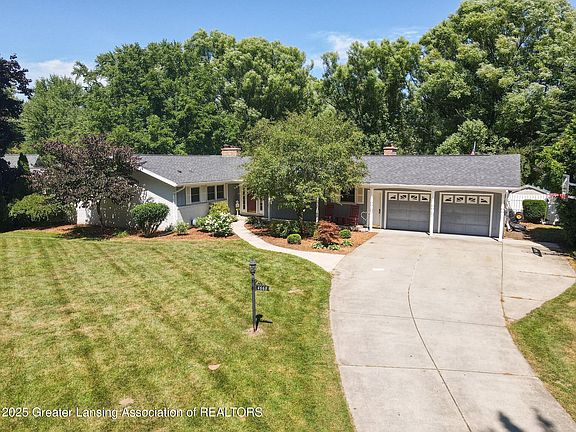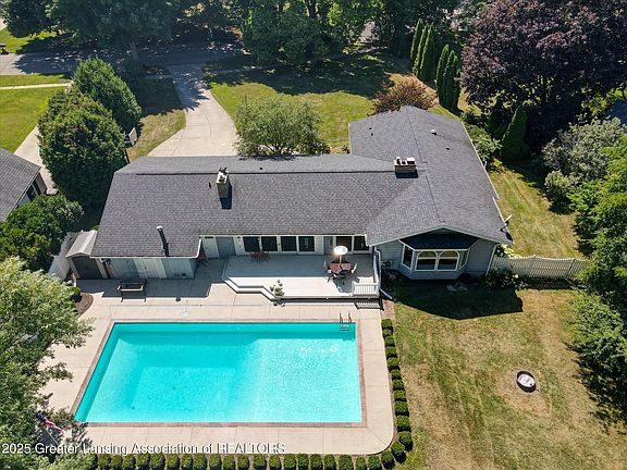 Welcome to 4668 Nakoma Drive - Indian Hills, Okemos Schools. Tucked away in the desirable Indian Hills neighborhood, this stunning ranch home offers the perfect blend of comfort, space, and luxury. Situated on 1.5 scenic acres along the river, you'll enjoy serene views and ultimate privacy—all within the award-winning Okemos School District. Inside, you'll find a thoughtfully designed layout featuring 3 spacious bedrooms and 2 and a half baths. Kitchen showcases oak cabinets and granite countertops. Warm up by one of the three fireplaces, or head down to the finished lower level that includes a large rec room and abundant storage space. Step outside to your private backyard oasis complete with an in-ground, heated saltwater pool—perfect for summer entertaining. A dedicated pool room and shed offer even more convenience. Additional highlights include a 2-car garage, ample storage, and a rare combination of nature, neighborhood, and luxury. This is more than a homeit's a lifestyle. All room and level measurements are estimated in accordance with board guidelines.