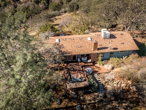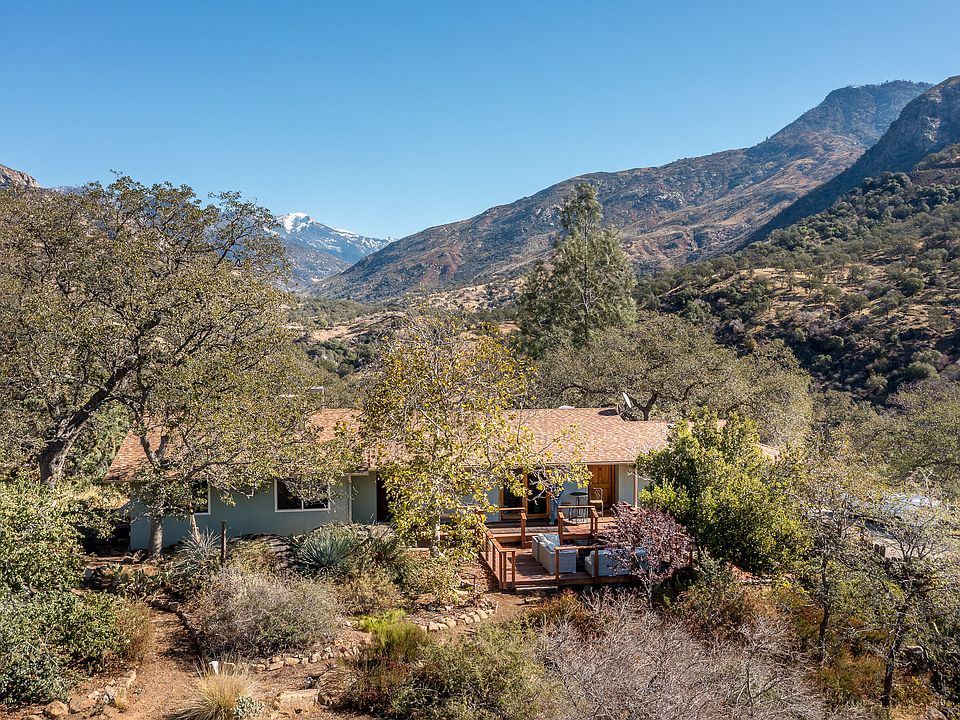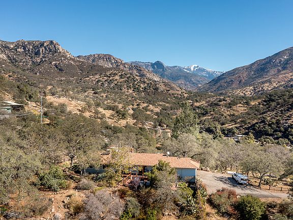 Have you ever dreamed of having your own private, secluded retreat within the boundaries of one of America's premier National Parks? If so, this property is a veritable dream come true. Located inside the southern entrance to Sequoia National Park, 4.5 acres of private seclusion and stunning views, amongst just a handful of private land inholdings; this property is truly unique and one-of-a-kind. Upon entering the home, you will be instantly stunned by the magnificent unimpeded views up the Kaweah River valley and into the snow-capped high Sierra. Abundant windows provide for beautiful natural lighting along with the views. The open floor plan flows seamlessly from living to dining to kitchen areas and the updated kitchen boasts high-end finishes. Stately beamed wooden ceilings, wool carpeting and wood floors adorn this well-appointed home, providing for a cabinesque charm that blends with the surrounding environment while maintaining the fine comforts of being well thought-out. With 3 bedrooms and 1 3/4 baths, there is room for guests, in-home office, gym or craft room. Private decks in front and back with expansive views create additional outdoor living space for relaxing or entertaining while taking in the grandeur of Sequoia National Park and the surrounding foothills. Stroll along the multiple paths in the fenced and water-wise landscape or build an ADU, there's plenty of room for both. Say goodbye to high electric bills; the solar panels are Seller-owned.