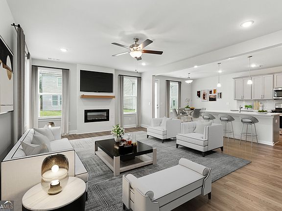Welcome to this stunning 4 bedroom, 3.5 bathroom home in the heart of Kennesaw! Designed with both style and function in mind, this home showcases the signature finishes including stainless steel appliances, level 3 Carrara Mist quartz countertops, 42' Stone cabinets, and a gas log fireplace with shiplap to the ceiling and a natural cedar mantel. The main level features Grey Chestnut hardwood floors and an open staircase with black iron railing for a modern touch. Upstairs, the primary suite is a true retreat with a tray ceiling, spa-like bath with a frameless glass shower, and a laundry room conveniently stubbed for a sink. Two bedrooms include their own private en-suites, while the remaining two share a Jack & Jill bath, creating the perfect balance of privacy and convenience. Located at the end of a quiet cul-de-sac in a gated community, this home offers extra privacy, natural light, and peace of mind. With no rental restrictions, it's a fantastic choice for families looking to be close to KSU, shopping, dining, and major highways or for investors wanting to grow their portfolio. Move-in ready, this one truly checks every box!