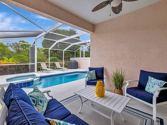 Discover your dream home with this stunning 2-bedroom, 2-bath villa built with concrete construction and a tile roof. The bright and airy interior boasts vaulted ceilings, a spacious primary suite with a walk-in closet, and a crisp white kitchen featuring stainless steel appliances, quartz countertops, and an island that opens to the inviting family room. Enjoy Florida living with a covered lanai and a heated, screen-enclosed pool, perfect for relaxing or entertaining. Additional features include a formal dining room, a laundry room with a sink, a two-car garage, and wood-plank tile flooring in the main living areas. Freshly painted with a coastal-inspired palette, this home reflects its ideal location. Centrally located in Stuart, just minutes from downtown restaurants, shopping,