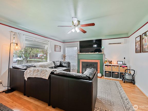 Super cute home, just a couple blocks from the Lake! 2 Beds with a Bathroom downstairs, and upstairs is another Bedroom, 1/2 Bath and Landing (for your Peleton and your work-from-home desk). There's a dedicated space for the dining room in front of the big picture window. The home stays warm and cool thanks to the ductless heat pump. The single garage is good for your car or lots of storage (you can literally stand up on the plywood-floored Garage attic!) ... and it's great to have driveway parking! Bonus area out back (deck, backyard, Shed, attached carport) has a cyclone fence lined with cedar fencing (it's total privacy for playing or relaxing!) Hurry and get in before Christmas; there's a great window waiting for your Tree!