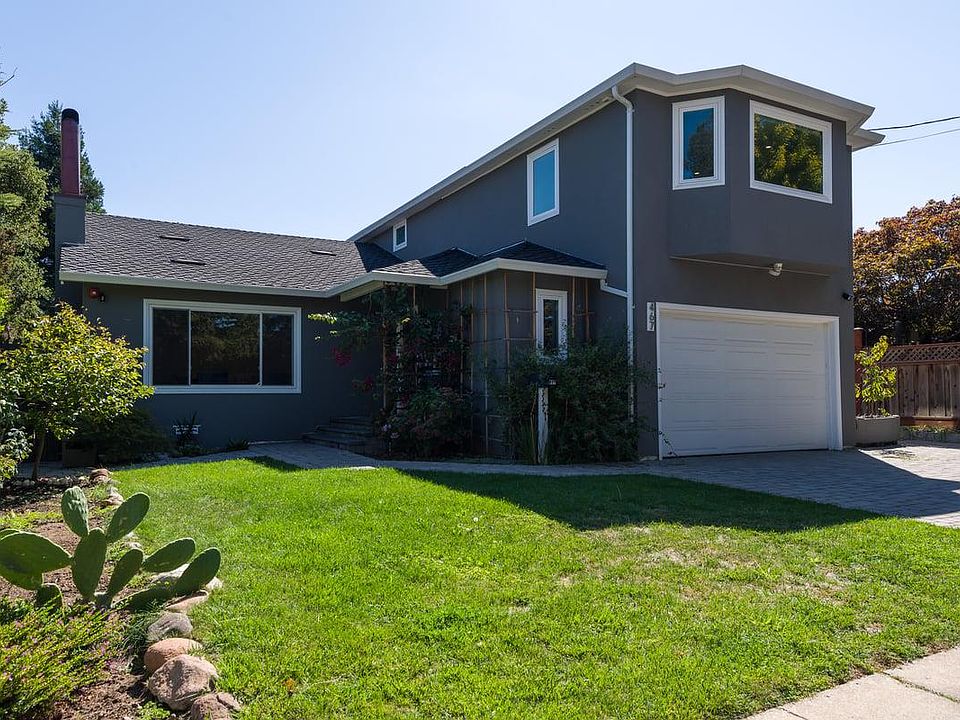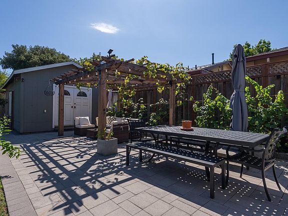 Pristine elegance is the only way to describe this home! The Chef's kitchen is the centerpiece, with Thermador appliances, a large LG refrigerator, and a 5 panel Centor glass door that fully opens to the backyard, creating seamless indoor-outdoor living. The 10-foot island, finished in elegant modern stone, provides seating for 4, generous storage, and a perfect gathering space. Fully renovated in 2022, this home has been transformed from a classic 1,700 sq. ft. layout into a bright, open modern residence with a 629 sq. t. expansion and soaring 14-ft ceilings in the kitchen and dining area. Enjoy solid hardwood floors and solid wood doors! Modern lighting, dual-pane windows, and fully owned solar panels. Smart features include central heating/air, fire sprinklers, and a recirculating hot water system.The home offers 3 suites, including 2 primary bedrooms with spa-style bathrooms finished in full tile and premium fixtures.High-end finishes! Outdoors, a lush pergola and an array of fruit trees including grape, plum, lime, tangerine, fig, and persimmon create a private garden oasis. A Tesla charger and modern laundry setup. A detached shed which can be used for whatever you see fit! This stunning home blends timeless quality with modern upgrades, move-in ready and built to impress.