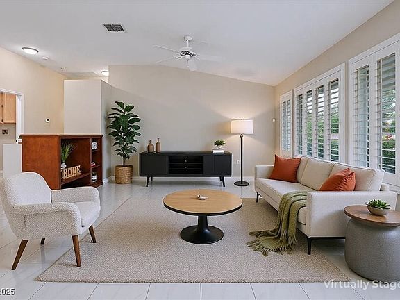 PAID-OFF SOLAR = YOUR AVG MONTHLY ENERGY BILL IS JUST $20! This upgraded 2 bd/2 ba 1,312 sq ft Pearl Model is on a desirable corner lot, offering style, comfort, and efficiency. Featuring vaulted ceilings w/ skylights, mix of herringbone-laid tile, marble tile, and LVP flooring for a modern, cohesive look. Plantation shutters & ceiling fans in every room. Kitchen boasts stainless steel appliances (2 yrs), Corian countertops & upgraded lighting. Primary bdrm includes large walk-in closet & bay window, adding natural light. Separate laundry room w/ cabinets. Other upgrades include Andersen windows (8 yrs ago), HVAC system (8 yrs ago), paver driveway & a custom security door for added peace of mind. Dog door installed near front door for an enclosed space. Garage comes w/ RaceDeck tile flooring, built-in storage & swamp cooler. Enjoy a low-maintenance lifestyle w/ HOA maintaining your landscaping. You can relax and enjoy your new home and all the amenities this community has to offer!