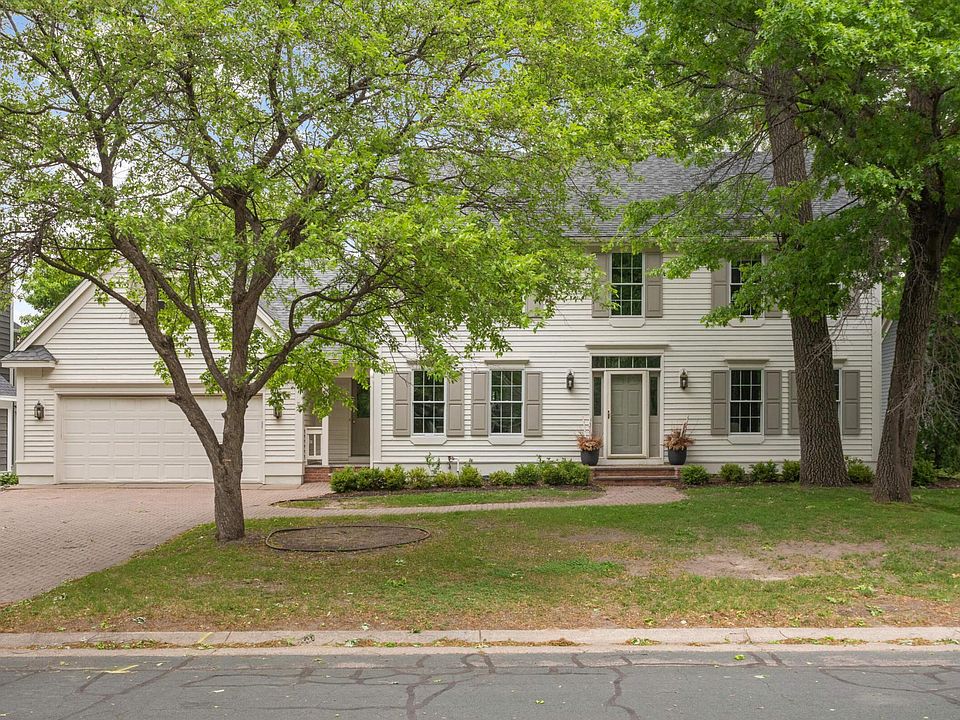 Welcome home! Tucked at the end of a quiet cul-de-sac in Shoreview’s coveted Harbor Place neighborhood, this updated and move-in-ready 2-story offers 5 bedrooms, 4 bathrooms, and over $280K in thoughtful updates since 2019. Designed for both comfort and functionality, the main level features a formal living room, cozy family room with fireplace and built-ins, a dedicated dining room with crown molding, and a beautifully updated kitchen with granite counters, white cabinetry, stainless steel appliances, and a re-stained butcher block island. The adjacent eat-in space opens to a large deck overlooking a private, tree-lined backyard. Upstairs, four bedrooms include a serene primary suite with dual closets and a spa-like bath with double vanities, tiled walk-in shower, and a soaking tub. The finished lower level adds flexible living space with a 5th bedroom, renovated bath, and room for a media area, gym, or play space. Major upgrades include new Pella windows, roof, and painted siding (2021), full basement remodel with insulation (2025), new carpet, paint, and refreshed landscaping. Extras like main-level laundry, a slate-tiled mudroom, and ample storage round out the home. Located in the top-rated Mounds View School District near parks, trails, lakes, Shoreview Community Center, and shopping—this is a home built for everyday ease and lasting memories.
