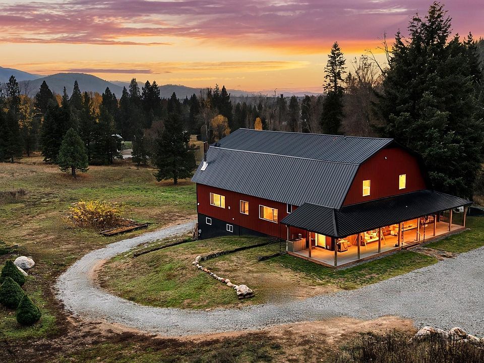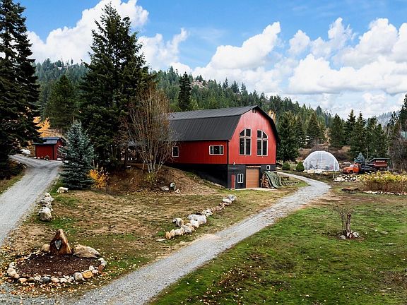 Welcome to this truly one-of-a-kind custom barn conversion set on 5 peaceful acres in beautiful Laclede, Idaho. Offering 4426sqft of finished living space plus an additional 1,620sqft that is framed in & ready to customize, this extraordinary barn home has been completely gutted & rebuilt from the ground up, blending rustic charm with an artistic, modern lodge design. The main level features a stunning custom kitchen with granite countertops, a unique copper penny backsplash & a separate coffee bar. The spacious living room showcases a floor-to-ceiling stone fireplace & huge windows allowing natural light & views to fill the space, built-in bookshelves, & a laundry/craft room which adds everyday convenience. The primary suite & a full MIL apartment (currently operating as a short-term rental) complete this level. Upstairs, a loft opens to a large bonus room ideal for a classroom, media, or game space along with a full bath, two bedrooms (each with its own loft area) & a flex room. The basement includes a finished kitchen, office, & full bath with laundry hookups, plus three framed-in rooms ready for additional flex rooms, storage, or a multi-generational suite. An almost-completed 572 sq. ft. garage offers excellent storage & utility space. Outdoors, you will enjoy a wraparound porch & the sounds of a nearby creek, a 24x48 high-tunnel greenhouse, chicken coop & run, garden area & an 8x12 shed which insulates a 1,700-gallon water tank. There is abundant parking space as well as an RV space with all hook-ups (inc. 30 amp elect.). Experience peaceful country living at its finest where creativity, comfort & opportunity come together in one stunning Idaho setting. Don’t wait to schedule your private showing today!