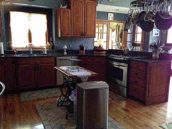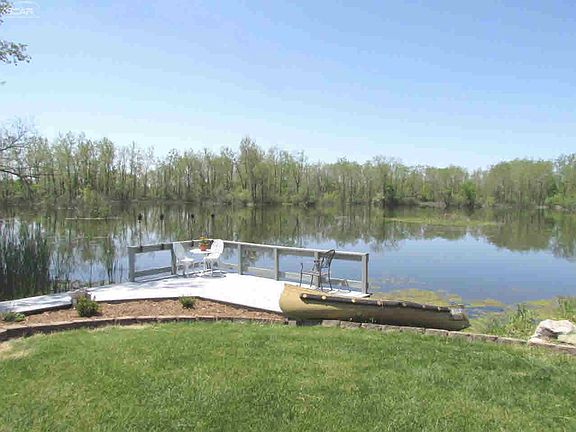 Lovely custom built two story home with quality throughout with beautiful setting on 7 acre shared pond. Home consists of 2x6 construction, Custom Oak Trim, Six panel doors, Anderson casement windows & French doors, Dual stone fireplace with custom glass doors on both sides in living room and breakfast nook, Kitchen with Oak cabinets, Granite counter tops, large pantry, new stainless steel appliances, Amish milled maple flooring in kitchen breakfast nook, Great room and hall. Four season room off kitchen with french doors to deck to watch all the natural wildlife and deer. Half bath, Master bedroom with private bath and laundry on first floor. Upper level consists of three bedrooms, full bath, His and hers craft rooms plus lots of storage. Exclusions are Deer Head, Elk Head and 9' Marlin on Living room wall also row boat and canoe.