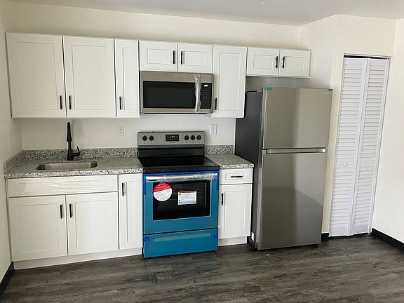 Marble countertopsUpgraded studio large apartmentBeautiful shaker white kitchenStainless-steel appliance setCentral ac