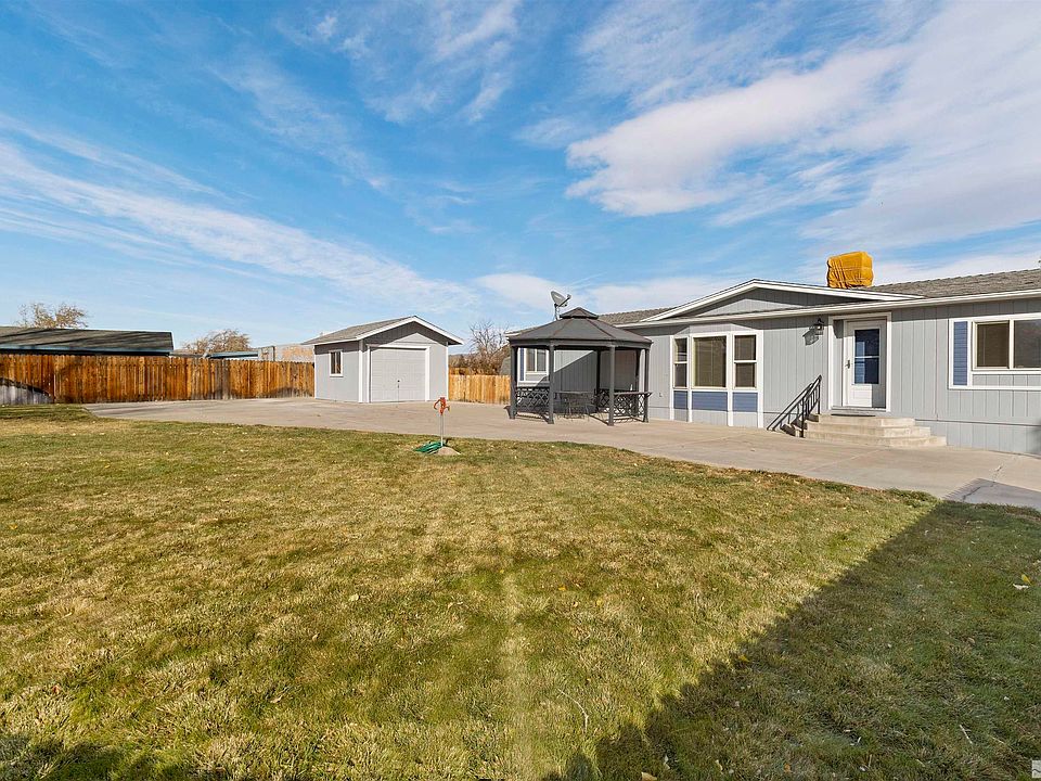 Beautiful home in a cul-de-sac with a large fully landscaped yard. Newer interior and exterior paint. Newer water heater replaced this year. The back of the home has a storage shed with fenced off area for a dog run. Large concrete patio has plenty of space for RV Parking and includes a single car garage. Newer LVP flooring replaced this year. Interior is light and bright with an open floor plan. Master is separate from guest rooms to ensure privacy., Gazebo in front of home stays and is perfect for outdoor entertaining. This home is a must see! Minutes from shopping and restaurants. 20 minutes to Reno/Tahoe International Airport.