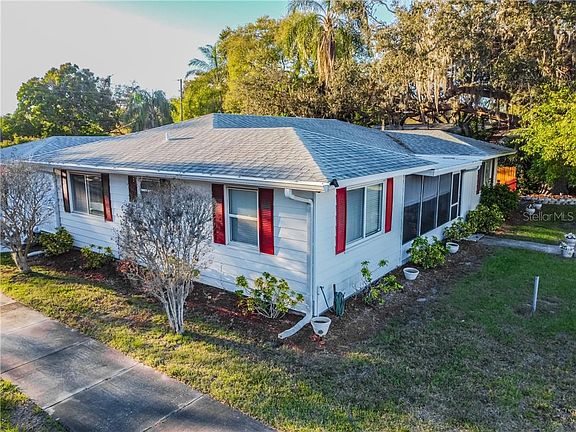 Opportunity knocks! Corner lot on beautiful brick street. Less than a 10-minute drive to Belleair Beach. This home has an open floor plan as well as a three-way spit bedroom plan which is a perfect set up for a mother-in or independent teen. The kitchen opens to the family room as well as dining space keeping family and guest together. The front bedroom has original look hardwood. There is a covered front porch as well as a side deck and a rear deck. This home would be perfect for entertaining. There is a detached garage with a workshop and a carport. Bring your toys or hobbies along with you. The central air conditioning was replaced in August 2019. No deed restrictions.