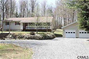 Nestled back on a 2.3 acre parcel is the 4 br country retreat you have been waiting for. Home features updated kitchen w/ new solid surface counters, walk in pantry, formal dining room. Home has C/A, updated baths, master bath w/ jetted tub, marble floor, vaulted ceiling in LR, back deck to watch the wildlife go by. Finished, walkout basement w/ laundry rm, family rm, 2 addtl br's. Brand new 2 car heated garage, lrg barn/workshop, new front porch railings, bluestone walkway.Home buyers warranty offered.