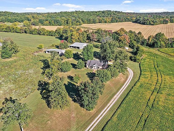 Country living at its best! If you are looking for an immaculate brick house with 2 large barns and 7+ acres off the beaten path, welcome home. This home is located within 15 miles to Bowling Green, KY and 58 miles to Nashville, TN. A one-of-a-kind view setting with mature trees surrounds this property. There is plenty of space for entertaining family and friends outdoors on the patio overlooking a picturesque view as well as indoors. A spacious eat in kitchen with new granite countertops, new stainless-steel appliances, and custom- built cabinetry make meal prep efficient and enjoyable. Dine with family and friends in the expansive dining room while admiring the gorgeous view from the bay window. The masonry fireplace and built-in shelves with cabinets set off the sizeable great room that boasts beautifully stained solid poplar crown molding and woodwork. The stained poplar woodwork is throughout the home along with solid poplar wood doors. Primary bedroom connects to a private ensuite with an oversized jetted tub and walk-in shower. Storage is plentiful with the walk-in closet. One of the two additional bedrooms has a bay window. The home has great potential for increased living space with a large attic accessed by a lovely staircase in the foyer as well as full size walk-out basement. Additional acres are available for purchase. Come check out this gem before it's too late! Call 270-726-0078 or 270-726-2150 for more information or a showing.
