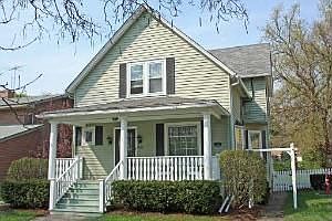 Charming 3 bedroom, 1.5 bath 1908 farmhouse with wrap around porch, widows walk and stained glass windows. Sought after hawthorne grade school. In town location. 1st floor office. Large kitchen and spacious dining room. 1st floor laundry. Walk in pantry. Full unfinished basement. Fabulous yard is fully fenced. 2-car detached garage.