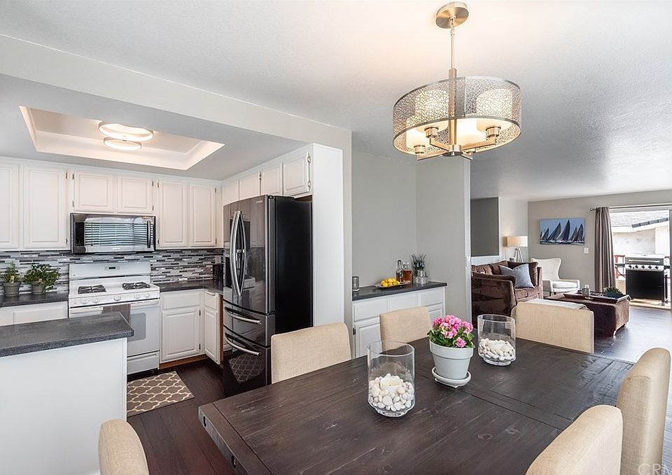 Sharp remodel combined with tech smart features. Situated in Point Fermin, LA's most southern neighborhood in San Pedro, this end-unit townhome brings stylish updates to each and every room. This 2 bed / 2.5 bath home also includes a wrap around balcony off of the living area with peek-a-boo ocean views. Coffee-stained bamboo floors with freshly painted walls & cabinets frame many upgrades including smart home technology to control lighting systems from phone, computer or home assistant. Additionally, a Nest and Nest Protect system control the A/C, heat and smoke/CO2 detectors. Kevo smart lock provides keyless remote entry. Upgrades throughout include: all new stylish lighting fixtures, electrical outlets, light switches, modern tall baseboards, new hardware on cabinets and doors, and window coverings. Kitchen upgrades include new backsplash and countertops, Blanco sink, Samsung microwave, sink faucet, and GFCI outlets and some USB ports. Bathroom upgrades include tile floors, new sinks, plumbing fixtures, toilets and all new hardware. Bedrooms feature an urban and open concept closet shelving system. The 2nd bedroom, currently used as an office/exercise room, offers rubber gym flooring. New fireplace mantel with glass rock firebox set. Laundry closet located inside unit. Large private storage room is in garage. Walk to Cabrillo Beach, restaurants and Point Fermin Park. Future development at nearby Ports O'Call Village will offer additional shops and entertainment.