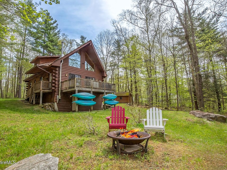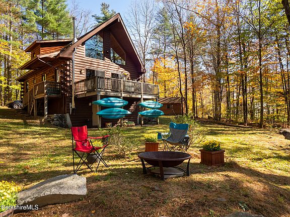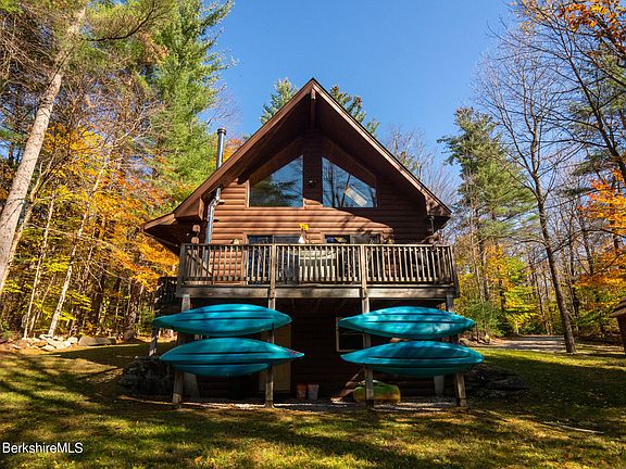 Escape to your own private sanctuary nestled in the picturesque landscape of Otis MA, just moments away from the renowned Otis Ridge Ski Resort and Otis town beach. Built in 2004, this contemporary thermo-insulated Lincoln Log home offers the perfect blend of rustic charm and modern comfort, set on 3.7 acres of pristine land in the breathtaking Berkshires. The open-concept living space features vaulted ceilings, a Franklin gas-burning fireplace, large windows, and ample natural light from every room, so no matter where you are you feel immersed with nature looking at all the views. Boasting 3 bedrooms and 2 full baths, this cabin offers plenty of room for family and guests to unwind after a day of adventure. The master suite provides a peaceful haven with its own ensuite bath and private balcony, while two additional bedrooms offer comfort and convenience. There is also a full walk out unfinished basement with a door and windows that can easily be finished for additional space.