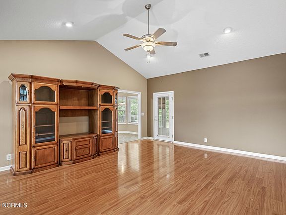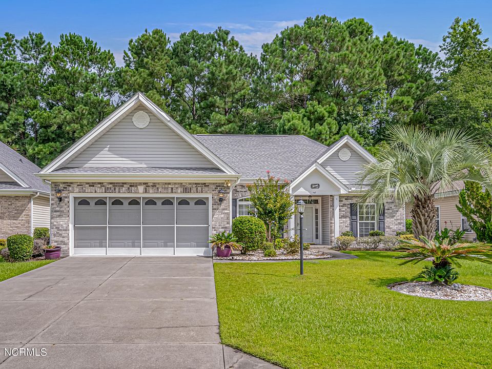 Nestled in the sought-after Ocean Side Place, just north of the NC/SC border, this single-level home is a captivating display of curb appeal and privacy. A well-thought-out split bedroom floor plan adds to its allure, offering three bedrooms and two bathrooms, creating a serene retreat for its fortunate occupants. As you approach, lush and meticulously maintained landscaping welcomes you to the front door, where you step into a world of high ceilings, soothing neutral colors, and an inviting open floor plan. The formal dining area features elegant chair railing and seamlessly flows into the vaulted living room, creating an ideal space for entertaining guests. Around the corner, the breakfast nook and kitchen await, boasting updated countertops, white appliances, and a convenient pantry for storage. The generous master bedroom boasts a tray ceiling and an ensuite bathroom, complete with double sinks, a walk-in shower, and a spacious walk-in closet. On the other side of the house, two guest bedrooms share a well-appointed guest bathroom, ensuring comfort for visitors. Escape to the tranquility of the four seasons room, offering serene views of the back deck and wooded backyard. The attached 2-car garage provides additional versatility as a delightful outdoor entertaining space, featuring a screened area to let the breeze in. Ample storage space and a handy sink add to its functionality. Inside the garage, a mudroom with side-by-side washer and dryer offers practical convenience. Ocean Side Place features a community pool, with proximity to Meadowlands Golf Course, and is a short drive to the beach, making this home a true haven of comfort, convenience, and natural beauty.