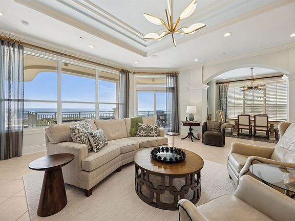 Welcome to refined coastal living in this upscale Carlton Dunes villa, an exceptional opportunity to own a piece of paradise. Step right off the elevator and into your own private foyer This exquisite four bedroom, three and a half bath oceanfront condo is fully furnished, professionally decorated, and thoughtfully upgraded throughout. Step into a bright, open floor plan where sweeping ocean views immediately welcome you. The designer kitchen is both stylish and functional, featuring stainless steel appliances, roll-out shelves, wood cabinetry, and a bar with a built-in ice machine that is perfect for effortless entertaining. The primary bedroom offers panoramic ocean views, creating a tranquil retreat to start and end your day. The en suite bath features a tiled shower with a frameless glass enclosure, adding a spa-like touch to everyday living. Enjoy the outdoors in comfort with two expansive balconies totaling 702 square feet of covered outdoor space, ideal for relaxing with a morning coffee or hosting evening gatherings by the sea. Additional highlights include two private garages, private in unit trash chute, access to two sparkling community pools, and a location just steps from the beach and fine dining at The Ritz-Carlton. For those seeking an elevated lifestyle, optional Ritz-Carlton gym memberships and Concierge Property golf memberships are available. Luxury, comfort, and coastal beauty come together in this one of a kind oceanfront residence.