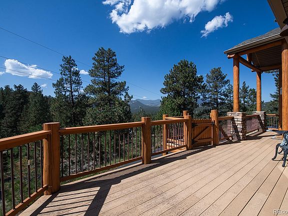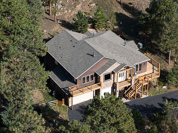 Welcome to the dream home you have been waiting for in Evergreen! This tranquil retreat boasts breathtaking mountain views and is just 5 minutes from the heart of Downtown Evergreen and Evergreen Lake, perfect for enjoying the best of both nature and town life. Sit on your front deck and enjoy a cup of coffee and views, or head inside this beautifully updated home and cozy up next to the stunning stone gas fireplace. The vaulted dining room invites dinner parties, while the spacious open kitchen and living room provide views from every corner. Upstairs, the primary suite is a true sanctuary, complete with a private deck, a cozy seating area, and another gas fireplace. Indulge in the luxurious jetted soaker tub and enjoy the convenience of two walk-in closets. This level also includes laundry facilities and two additional bedrooms with a full bathroom, thoughtfully designed for comfort and privacy. The lower level is versatile, offering an extra bedroom, a bonus exercise or office space, and another full bathroom. With large windows in the walkout basement, you can transform this space into a family or media room, endless possibilities await! Step outside to discover a huge walkout patio, a cozy seating area among the trees that overlooks the home and mountains, and multiple decks, perfect for embracing the Colorado lifestyle and enjoying the local wildlife. This is Evergreen…and you are going to LOVE living here!