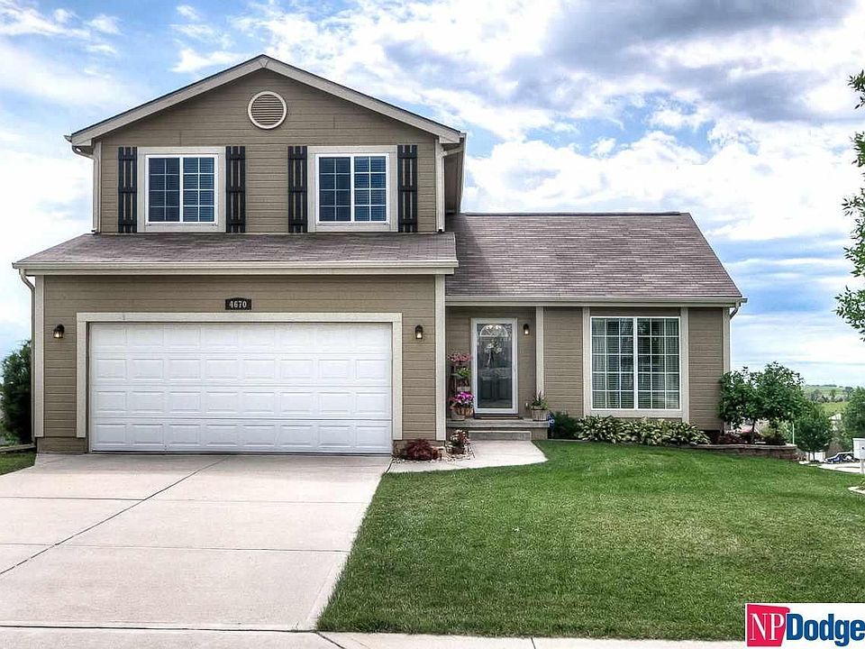 Beautiful two-story home with 3 bedrooms, 2.5 baths, and a 2 car garage in the popular Stone Ridge subdivision. Move-in ready. This spacious home offers over 1600 finished square feet of living space, open floor-plan, main floor laundry with half bath, and vaulted ceilings. Kitchen offers large eat-in area, stainless steel appliances and pantry. Exterior features large corner lot with walkout basement, and large deck and patio. Located on hilltop that offers excellent view. Spacious, unfinished, basement with available plumbing and walkout to patio. Walking distance to splash park, schools and trails. Updated landscaping with retaining walls and edging around entire house. New roof in 2014. New outside A/C unit 2016. New interior paint 2016.