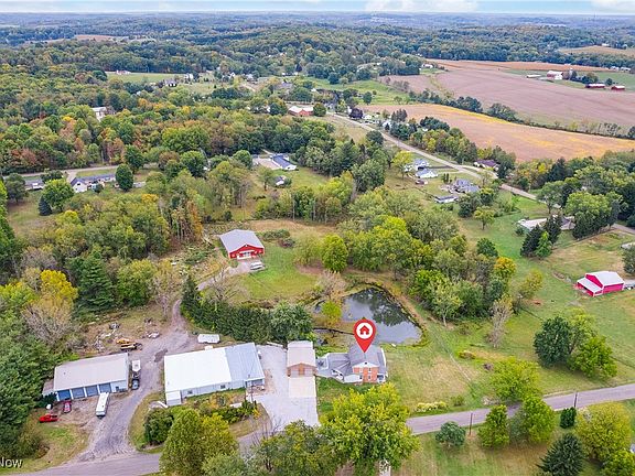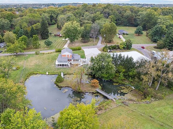 WELCOME TO A ONE-OF-A-KIND OPPORTUNITY! 9 Acres of prime land with a fully stocked pond, 2 outbuildings, and a new barn for livestock. The view from your living area is breathtaking. The 3,000 square foot home features 4 bedrooms and 3 full baths with the possibility of a 5th bedroom and living headquarters in the lower level with walk out sliding glass doors leading to a covered patio and the pond. Very large family room overlooking the ponds, a first-floor master bedroom with beautiful views as well. The wrap around porch gives this beautiful home the finishing touches you've always dreamed of. The two outbuildings equal over 11,000 square ft., perfect for a home business, hobby or commercial income. Two and a half car detached garage measuring 31 x 31. The new 60 x 80 barn is perfect for your livestock. The outbuilding offers 3-phase lighting in shop and the body shop offers 2 car lifts. Updates include new barn, 40 tons of new limestone 57 for driveway, 30 ton of grindings, new built in entertainment center, new first floor flooring, new fencing surrounding the property and new driveway leading to the barn. Newer A/C and Furnaces. This home is close to highways and offers every amenity of country living, yet only minutes from town!