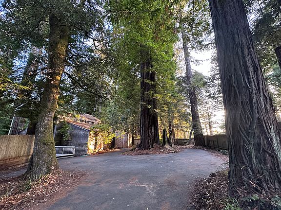 Small balconySurrounded by beautiful redwoodsModern feelNew countertopsFresh paintNew carpetWood burning stove