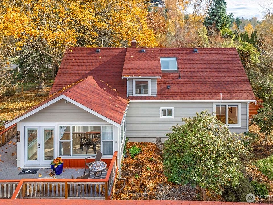 Unique opportunity to build the lifestyle you deserve & desire. Charming 1939 farmhouse on 4.8 usable acres with stunning Mt. Rainier views. Incredible income potential- home business, AirBnB, hosting events, etc. Timeless updated home features spa-bath w/ clawfoot tub, newer SS appl, sunroom, 55-panel solar array (tiny PSE bill), heat pump, pellet stove, & Generac generator. The grounds: huge 30+ person gazebo, BBQ shelter, decks, pond, creek, fire pit, fenced dog run & washtub (heated H2O). 5+ car/RV detached garages, art studio (ADU potential), shop space & more. Meadow cottage, orchard, berries, gardens & livestock fencing. 5 minutes to heart of quaint d'town Enumclaw. Pix & video help, but must tour to fully appreciate. Hustle!