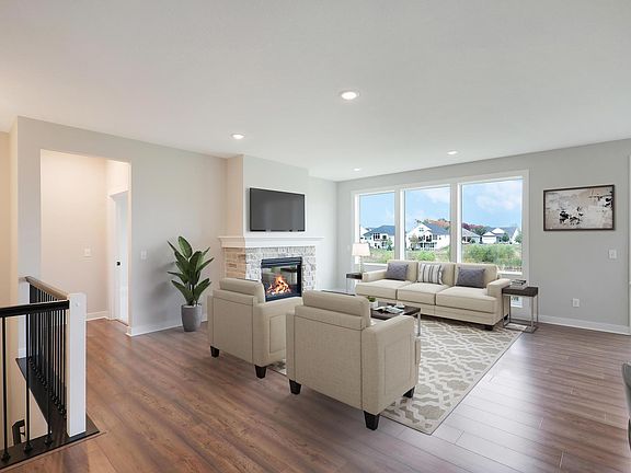 BRAND-NEW & MOVE-IN READY! This Victoria walkout rambler floorplan features a beautiful, open-concept kitchen/living/dining room. The windows in the home are showstopping with tons of natural light! In the kitchen, you'll find a gorgeous backsplash, statement lights above the island, and stainless steel Samsung appliances. This home also has a main level owners bed/bath. The convenient pass-through layout allows you walk right through the large walk-in closet into the laundry room area. Finally, make your way downstairs to a spacious finished basement and ample storage. South facing water views of the pond with a walk-out lot. Home is ready for you to move in!