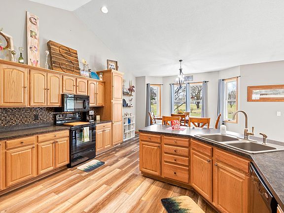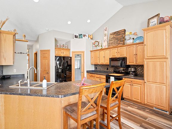Enjoy the ease of one-level living in this spacious home featuring open floor plan with vaulted ceilings that create a bright and airy feel. With 4 bedrooms and 3 bathrooms there is room for everyone-including a secondary suite with its own private en-suite bath. The cozy living room is centered around a gas fireplace, perfect for relaxing evenings. Step outside to the backyard setting with a lovely garden and patio-ideal for outdoor gatherings or mornings with coffee. The property also boasts a massive 26x38 heated attached garage and 32x56 finished and heated pole shed, offering incredible storage or workshop potential. Recent updates include a new furnace, A/C, air exchanger and roof. this a rare opportunity with great space, comfort and updates all in one. Welcome Home!