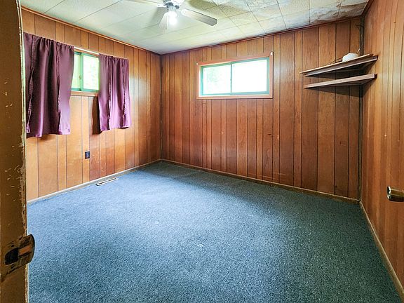 Here are Five beautiful wooded acres just outside of the City Limits! Beautiful peaceful area. Abundant wildlife. Deer tracks all over. Newer metal roof. Basement is partially finished, there is already a closet and egress window that could easily make a third bedroom! The living room is huge with a wood burning fireplace. This home has natural gas. With some TLC this could become your dream home! Call Today! Home Warranty included.