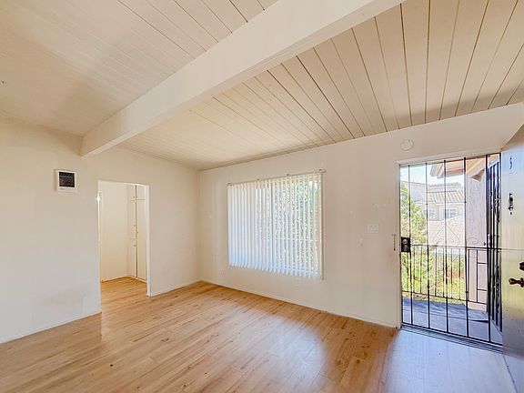 North Park! Great cozy upstairs apartment with high exposed beam ceilings. Located in a small complex centrally located near schools, parks and the renovated North Park business district. Lots of closet space! Open carpeted floor plan with a bartop. Quick freeway access, Short walk to Adams Avenue. Garage parking spot available for $100.00 a month extra. Come View today.