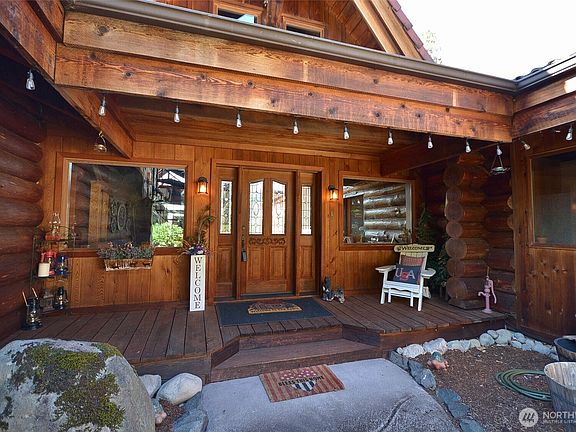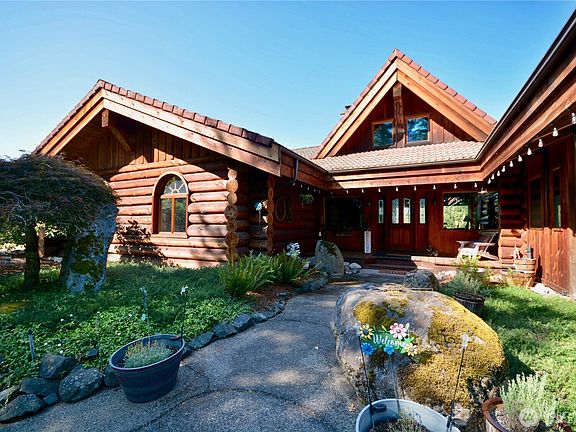 Life in your own lodge. Of matchless construction & appearance this stunning 2,498sf Swedish-cut log home sits on 4.6 private acres. Dramatic 17ft high shiplap ceilings, solid beams & a fabulous stone fireplace. Beautiful chef's kitchen w/island & large dining area - perfect for entertaining. The beautiful main bedroom boasts a fireplace & ensuite bath - 2 other bedrooms share 2 additional bathrooms. So much more: concrete roof, suspended loft, walk in pantries, storage rms, new heat pump, new well pump, large outbuilding, huge carport, gazebo, etc. Close to amenities & JBLM. Call for Special Features list & be impressed!