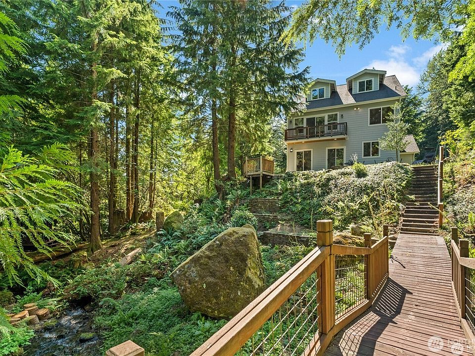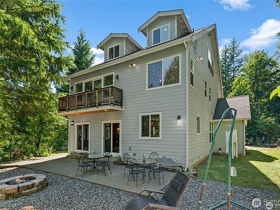 Wooded mountain living just 10 mins to I90 & 12 mins to North Bend. Offered for the first time by its original owner, this peaceful retreat sits at the end of a private road near Mt. Si. Surrounded by an acre of forested land & bordered by a mountain stream. Dedicated office space or room for adding additional bedrooms. The property features greenhouses for year-round gardening, a gazebo for peaceful outdoor moments and winding hiking paths. The custom built home is thoughtfully designed w/ a spacious, open, and light-filled layout. Features custom designed kitchen, abundance of storage, soaking tub and third floor dedicated as an entertainment area. Please do not approach home without a Realtor present.
