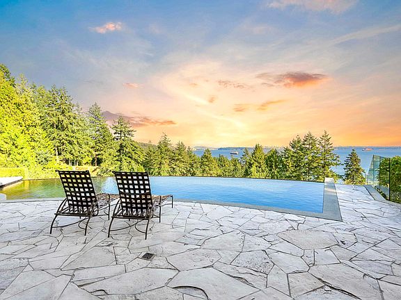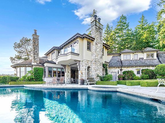The spectacular Clovelly Estate is one of West Vancouver’s most recognized luxury residences, ideally positioned on a private 36,000 sq.ft. property with breathtaking ocean views just steps from Stearman Beach. This timeless European-inspired estate showcases a classic stone façade, bespoke millwork, and refined architectural detail throughout. Featuring 4/5 bedrooms and 6 bathrooms, the home is highlighted by a lavish primary suite with vaulted ceilings, private terrace, fireplace, walk-in dressing room, and spa-inspired ensuite. Manicured gardens, superb stonework, and a spectacular infinity-edge pool overlook the ocean and city skyline. Complete with entertainment lounge, guest accommodations, and recreation areas, Clovelly Estate is a truly iconic residence of elegance and privacy.