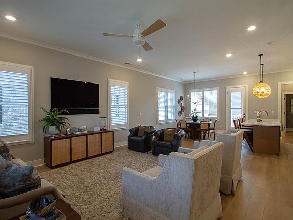 Practically brand new townhome in sought-after Everlee! This 3 bedroom, 2.5 bath home was just built last year and offers true designer touches throughout! Every detail has been thoughtfully upgraded—plantation shutters on every window, top-of-the-line appliances, new washer and dryer, and gorgeous fixtures. The open-concept floor plan is perfect for entertaining, with the kitchen flowing seamlessly into the living and dining areas! Step right out to the covered back porch for easy indoor-outdoor living. Upstairs, the spacious master suite boasts a huge walk-in closet and a stunning master bathroom with a walk-in tiled shower. The laundry room is equally impressive with designer wallpaper and custom built-ins. Two other bedrooms upstairs with a full bath. 2 car garage with abundant storage! No need to wait six months to build—this home is ready NOW!! Enjoy resort-style amenities including a state-of-the-art fitness center, pool, pickleball courts, and walking trails.