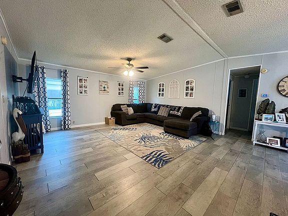 55+ Community, Turnkey & Move-in ready, located in Merritt Island, Florida just minutes from the beach and a short ride to Orlando. This 3 bed 2 bath home has been completely redone on the inside. New floors, new tile, new quartz counter tops (kitchen), new master bath vanity, new walk in shower, new lighting/ceiling fans and entire house has fresh paint. Brand new HVAC installed end of October with 10 year fully transferable warranty and new metal roof just installed end of November. House features a spacious Florida room with A/C unit, a two car carport with storage shed w/ electric and double wide driveway on a great corner lot. Golf cart to be sold with home also, it is a 2018 Easy Go with lithium battery and blue tooth speaker.