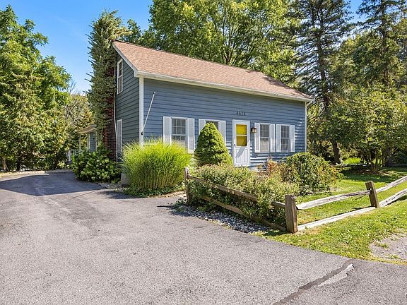 This adorable Salt Box Colonial was originally built in 1890 and has been lovingly updated by its current owners. The home is full of character & charm, featuring exposed wood beams and a stunning stone fireplace. At just over 1600sf this home features an efficient floorpan with space for all your needs. Enter through the cheery yellow front door into the living room, the heart of the home. Ascend the staircase to find three bedrooms upstairs, the largest boasts an en-suite half bath. From the living room proceed toward the back of the house to the dining room, then the kitchen with cathedral ceilings, updated SS appliances and attached hearth room featuring a floor to ceiling stone fireplace. The main bathroom is in a hallway just off the hearth room. This hallway contains a double closet and leads back to a large room at the front of the house that you can also access from the living room. This room is currently being used as the owner's primary bedroom but could also serve as a den, home office, or play room if you prefer. At the back of the house you'll find the laundry room with door to a side porch leading to the driveway, as well as access to the basement. Rounding out the main floor, is an office/exercise room with a set of sliding glass doors that lead to a large deck with ample space for al fresco dining and gathering with family & friends. Steps from the deck lead you down to the beautiful & very private back yard with mature landscaping and multiple large trees. Limestone Creek borders the back of the property.
