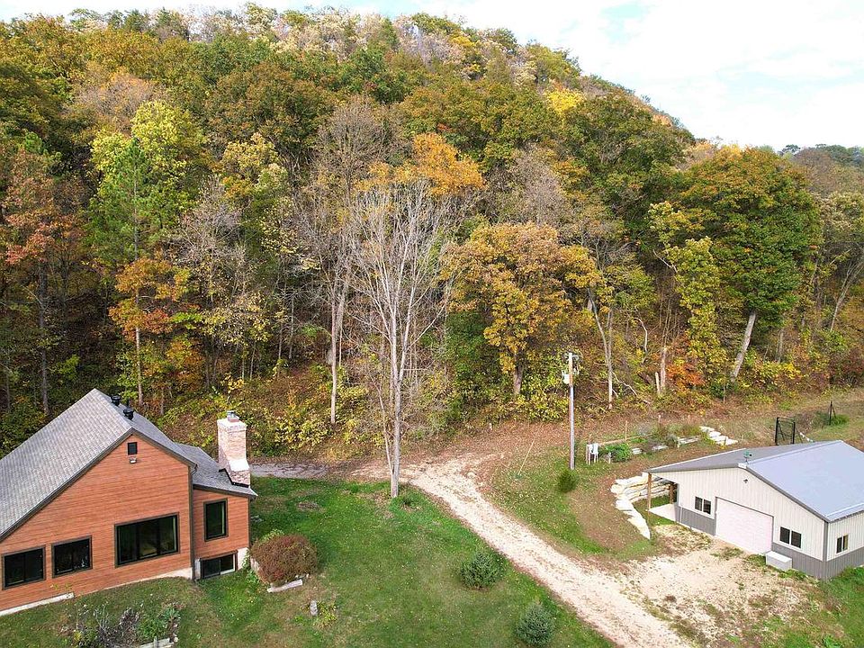 Discover 25+ WI Driftless Region acres surrounding this extensively updated, cozy, south-facing cabin-style home! Enjoy real privacy on a dead-end, township-maintained road. The home's main level offers comfortable living with stunning fieldstone fireplace and soapstone insert in the great room. Lower level has a wood stove, full bath, laundry area, bonus room, and ample storage. Outside features a spacious yard, 2 meadows, hardwood forest with rock outcrops, year-round creek, and an amazing wooded ridgetop. Includes a 32x30 shop, 2 car garage, newer roof and gutters, fenced garden, raised beds, medicinal and culinary herbs, perennials and berries, dual Ecoflow Pro power backup system, and a deck with cabana. Privacy, modern updates, and natural beauty! Private property, no drive-ins.