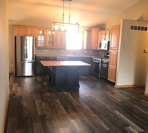 The main floor has wood look vinyl plank flooring in living, kitchen, dining, hall and baths, carpet in bedrooms and family room and upscale lighting! It offers a 2-stall garage with a private entry directly into your own unit. Large storage area in lower level has a washer and dryer. Off the kitchen is a covered patio and large back yard. Small pets 20-25lbs negotiable. You don't want to miss this opportunity! Fill out the pre-screen/application.
