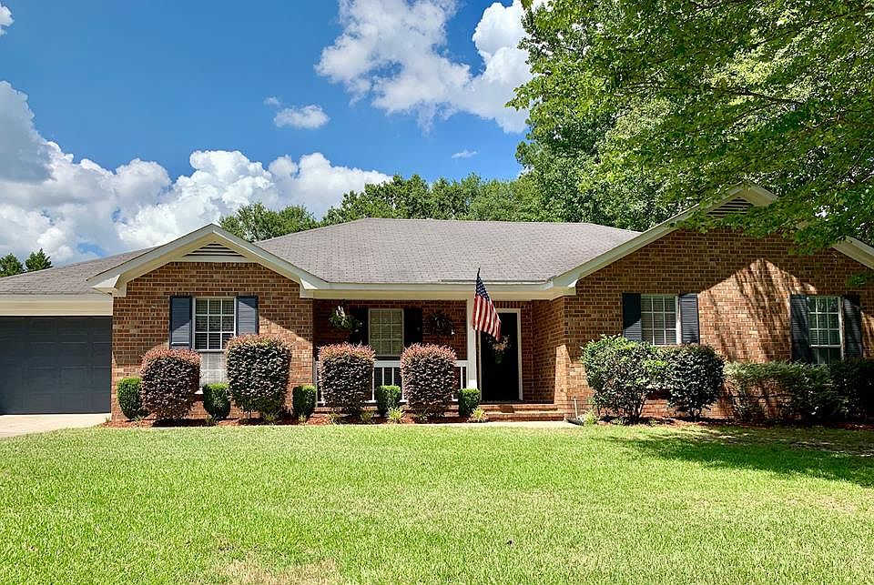 Great Location in Martinez! Adorable all brick ranch with 3 bedrooms and 2 full baths. Enjoy your morning coffee or afternoons on your rocking chair front porch. Foyer opens to dining room and great room with laminate flooring throughout common areas. Great room has nice stone fireplace with gas logs. Kitchen with breakfast area and tons of counter space and cabinets. Tile back splash and stainless steel appliances accent this large kitchen. Oversized laundry room with storage leads to the garage. Owner's suite has a nice walk in closet and shower/bath combo. Two additional spacious bedrooms share the bath in the hall. Patio in the fenced back yard is perfect for grilling and entertaining. The large back yard has a double gate and a storage building that will remain with the property. Sprinkler system in front and back. Come see this beauty today because it won't last long!!