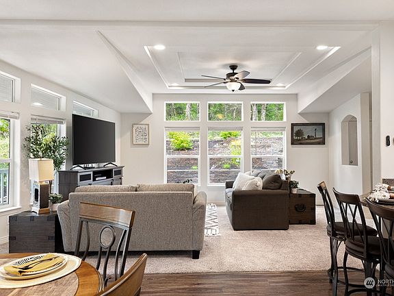 Nestled in nature, this single-story gem on 0.84 acres embodies PNW beauty. Nearly brand new, it offers 2 beds, den, 2 baths, A/C, sprinkler system, gorgeous wall of windows, and a serene covered deck overlooking private woods. The primary suite has a large walk-in closet, dual vanity sink, and lots of storage space. The den is flexible & could function as 3rd bedroom or office. 2-car garage, large patio, & over $60k in landscaping add charm. Fish, swim, or boat at Goss Lake, only 1/3 mile down the road. So close to the quaint town of Langley, known for its eagles, orcas, & Cascade Mountain Range views. Just 10 miles to the mainland via the Clinton Ferry. Discover contemporary comfort, seclusion, & connection in this Whidbey Island retreat.