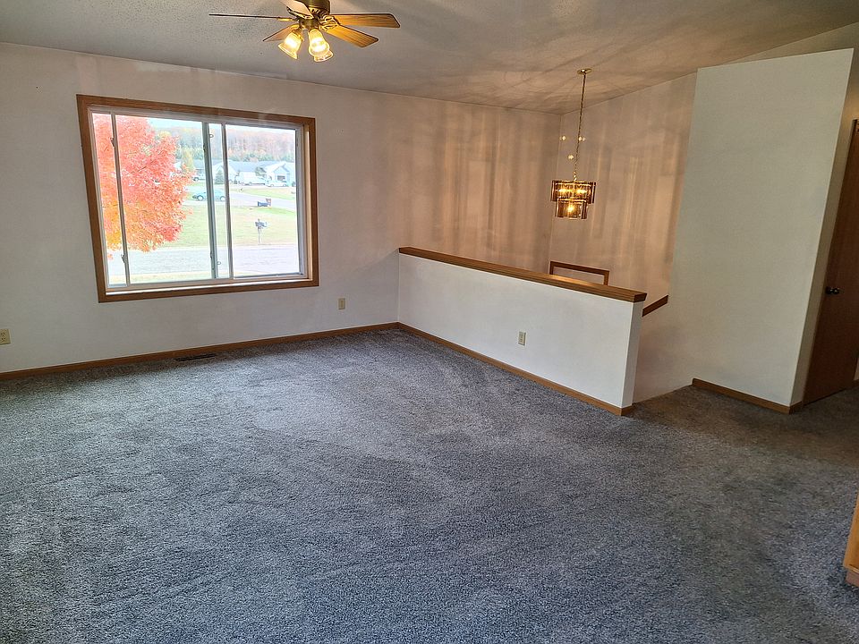South Chippewa Falls/North Hallie Split level twin home, Features: open concept, vaulted ceilings, 3 bedrooms, 2 baths with laundry chute to lower level. Wood deck off kitchen with stairs to yard, finished garage, lots of windows offer abundance of natual light, lower-level family room, natural gas high efficiency furnace and central air, finished lower-level utility room, lots of closet space. Chippewa Falls school district, One cat or dog upon approval, No smoking in unit, 1 1/2 year lease, Rent per month $1780.00/ Security Deposit 1.5 times the rent,