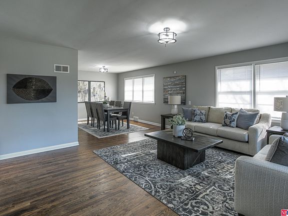 All Brick Raised Ranch with Massive fully fenced backyard! Tons of curb appeal as you walk up to a freshly painted exterior with mature trees and extra parking pad. Walking Inside you'll find ample natural light shining across the refinished natural hard wood floors and new interior paint throughout. Over 1,400 on the main floor, 3 bedrooms, and tiled out full bath. Remodeled Eat-in Kitchen with quartz counters & SS Appliances leads you into spacious sun porch that takes you though to the covered back porch and sprawling back yard with entertaining deck in back corner. Basement offers utility room, Extra Mud room/Storage room, Living room, and Flex Room with a 3/4 en suite. Deep 1 Car garage. Close to Schools, Aksarben, Interstate Access, and Entertainment. This home has been Pre-Inspected. Roof & gutters 2022, furnace and air 2021, kitchen & bath remodel 2023. This is a must see if looking in the mid-town and surrounding areas! Call today to schedule your showing!