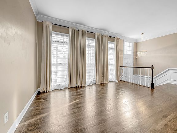 Step inside to a bright mid-level entry floorplan featuring large windows, abundant natural light, and open living spaces. The main level is highlighted by hardwood floors, elegant crown molding, and generously sized formal living and dining rooms, perfect for entertaining or everyday living.