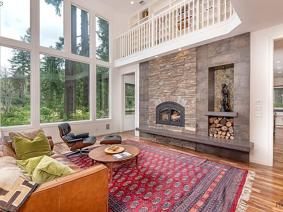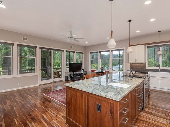 Exceptional McKenzie Riverfront estate. Cross over the scenic Goodpasture covered bridge to reach this spacious 4308 sq. ft. home with attached 3 car garage nestled on 1.62 private gated acres with mature landscaping and easy river access. The home was designed to take in the river views and has 3 separate decks overlooking the river. It was remodeled in 2019 and features a large gourmet kitchen open to the family room with gas fireplace, living room with floor to ceiling windows overlooking the river and wood burning insert, large owners suite on main level with private deck, upstairs features a library and loft office area, 2nd owners suite with private balcony overlooking river and 2nd family or media room with a balcony overlooking the gardens. Would work well for multi generation living. Also features abundant storage, surround sound, security system, butlers pantry and large storage area under the house not included in square footage.