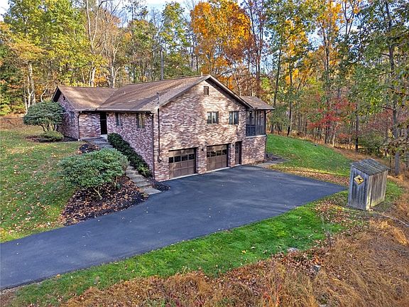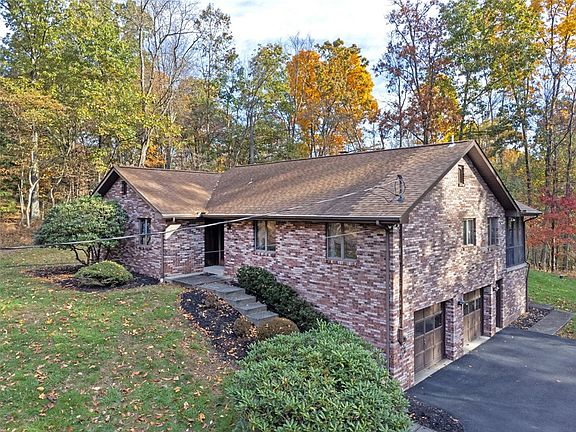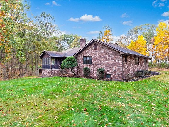 Well Maintained, Custom built, all Brick 3 Bedroom Ranch nestled on a private 6.8 acre lot. Welcoming tiled entry that flows through the hallway. This home has many updates that include Bathrooms, Kitchen and Flooring. There is a 1st floor Study that makes it easy if you need to work from home. The Bedrooms are generous in size. Master Bedroom has an Ensuite full Bathroom with tiled walk in Shower, Makeup Vanity area and was remodeled by dream Bathrooms. The Eat In Kitchen has Manor House cabinets and Granite Counters. Formal Living Room and Dining Rm. Family Room has Log Burning brick faced fireplace, beamed vaulted ceiling, chair rail and wainscot . Enjoy the out doors from the screened deck just off the eat in Kitchen. Repaved and Sealed Driveway leads to the well oversized 2 car garage. There is a wood shed just off the driveway for easy wood access. Full unfinished Basement has lots of storage room. 1 Yr Guard Home Warranty Included. This is a Home and a Getaway all in one.