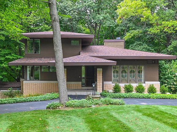 Tucked away in a serene setting in the Kettle Moraine, this Prairie-Style home blends natural beauty with modern comfort. Expansive windows and a skylight fill the home with light. The large kitchen features SS appliances and a wall of windows overlooking the 3-season room and deck. The bright living room offers HWFs and a sleek FP. Upstairs, 2 bedrooms with window seats share a pristine bath. The walkout LL is built for entertaining with FR, wet bar, bonus space, and 3rd full bath. Outside, enjoy the spacious deck nestled among trees. Enjoy the shared lake access for kayaking and fishing. Bring your UTV and enjoy the Kettle Moraine roads directly from your garage. Updates: New roof, interior/closet doors, hot tub, epoxy garage floor, refinished HWF and more. Don't miss this gem!