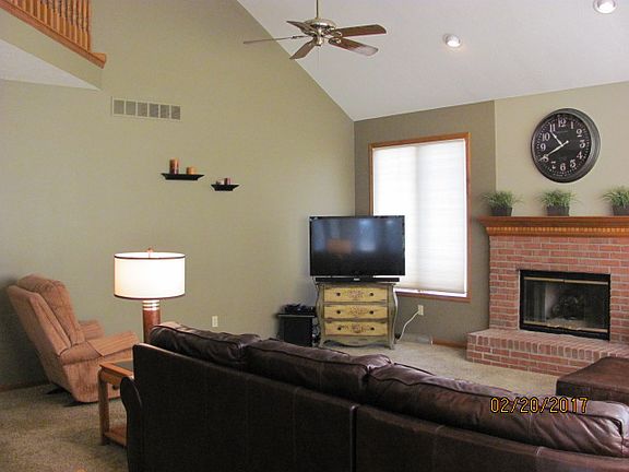 Gourmet kitchen! This 1-owner home is nestled on 3/4 acre of land. A 2-story foyer offers a coat closet, tile floors & glass French doors to the office. The grand vaulted great room features a gas fireplace with raised brick hearth & hickory wood mantle. Windows surround this room with custom blinds. Open to the true gourmet chef's kitchen with 106sf of granite countertops, a center island w/gas 5-burner cooktop, double wall ovens, 1 being convection, a walk-in pantry, hickory cabinets & updated lighting. The eating area is spacious & has a sliding door to the rear stamped 20'x30' concrete patio. The sun room is situated off the kitchen with a sliding door to the stamped concrete patio as well. This completes the first floor. The spacious master suite has a coffered ceiling, large sitting area, a spacious master bath w/walk-in closet & private walk-in shower/water closet. Two additional bedrooms, one with a walk-in closet & attic storage. The full bath has dual sink vanities & private tub shower/water closet. The large linen closet & balcony complete the second floor. The finished basement features a full bath w/walk-in shower, recreation area & two large concrete crawl spaces for additional storage. The rear yard features a 30'x30' concrete pad, currently used as a basketball court, & storage shed. Additional amenities include: 1yr HSA home warranty, 30 year shingle, 1st floor laundry, 3-car side load garage. Conveniently located near I80/90. Qualified buyers by appt. only.