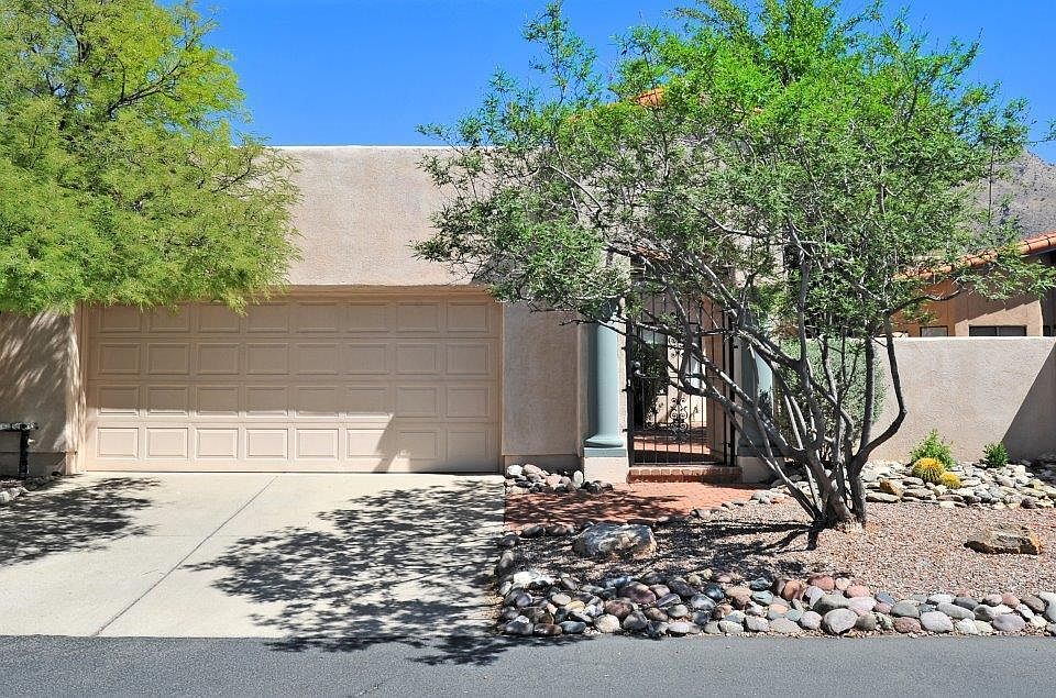 Welcome to your serene retreat! This beautifully designed 2 bedroom/2 full bathroom townhouse offers a perfect blend of comfort, style and breathtaking views of the Catalina Foothills Mtn range! Nestled in a quiet cul-de-sac and gated community, this home features an open concept living area with abundant natural light, vaulted ceilings and large windows that frame the sweeping mountain views. Updated kitchen with granite countertops, SS appliances and eat-in breakfast nook. The primary bedroom includes majestic views of the mountains, en-suite bathroom and generous closet space., while the second bedroom is perfect for guests, a home office or growing family. Convenient neighborhood pool and hot tub make for a wonderful way to relax. Shopping & amenities nearby.