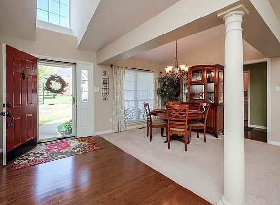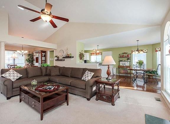 Attractive Move-In Ready Great Room Ranch!! This property sits on a beautiful, large, fenced corner lot. Open sunlit floorplan with main floor laundry and a spacious main floor office. The kitchen features newer hardwood flooring along with newer appliances and countertops. Nice size master suite and bath with walk-in closet. Two additional bedrooms and an updated full hall bath. Vaulted great room is open to kitchen/breakfast room and has woodburning fireplace. The exterior is crisp and clean with newer driveway and updated architectual shingled roof and fresh landscaping. An aluminum fence services the rear yard allowing the wooded treeline to show. Cozy private patio..sprinkler system and sec. system for extras. Wonderful Pool Community!!